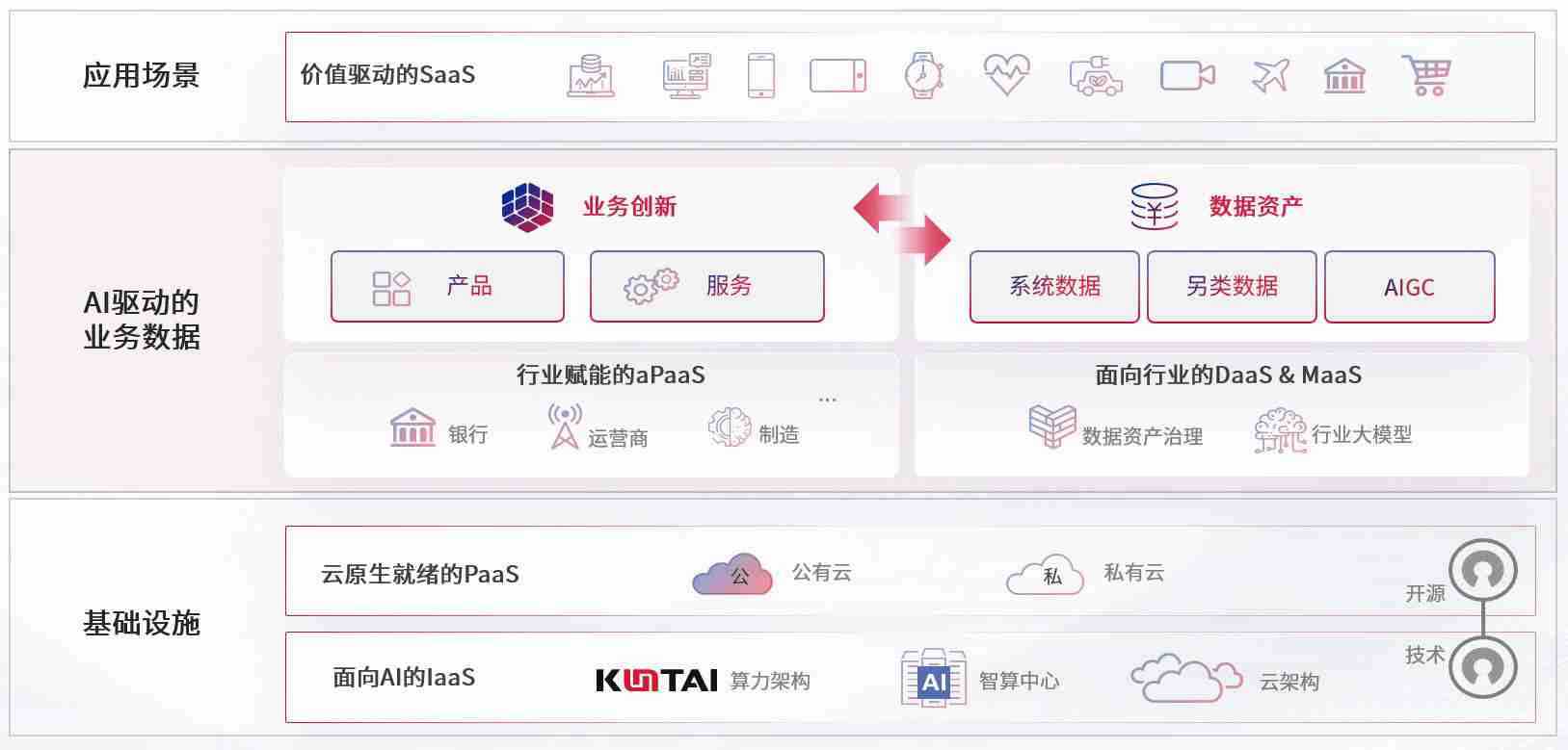 数字时代,,围绕企业数字化转型的关键要素,,NO钱包数码开创性的提出数云融合战略和技术体系框架,,,着力在云原生、、、数字原生、、、AI原生和信创产业上架构产品和服务能力,,,,为处在不同数字化转型阶段的快消零售、、汽车、、、金融、、、、医疗、、、、政企、、教育、、、运营商等行业客户提供泛在的敏捷IT能力和融合的数据驱动能力,,,,构建跨界融合创新的数字业务场景和新业务模式,,助力企业级客户建立面向未来的核心能力和竞争优势,,,,全面推动社会的数字化、、、智能化转型升级。。。